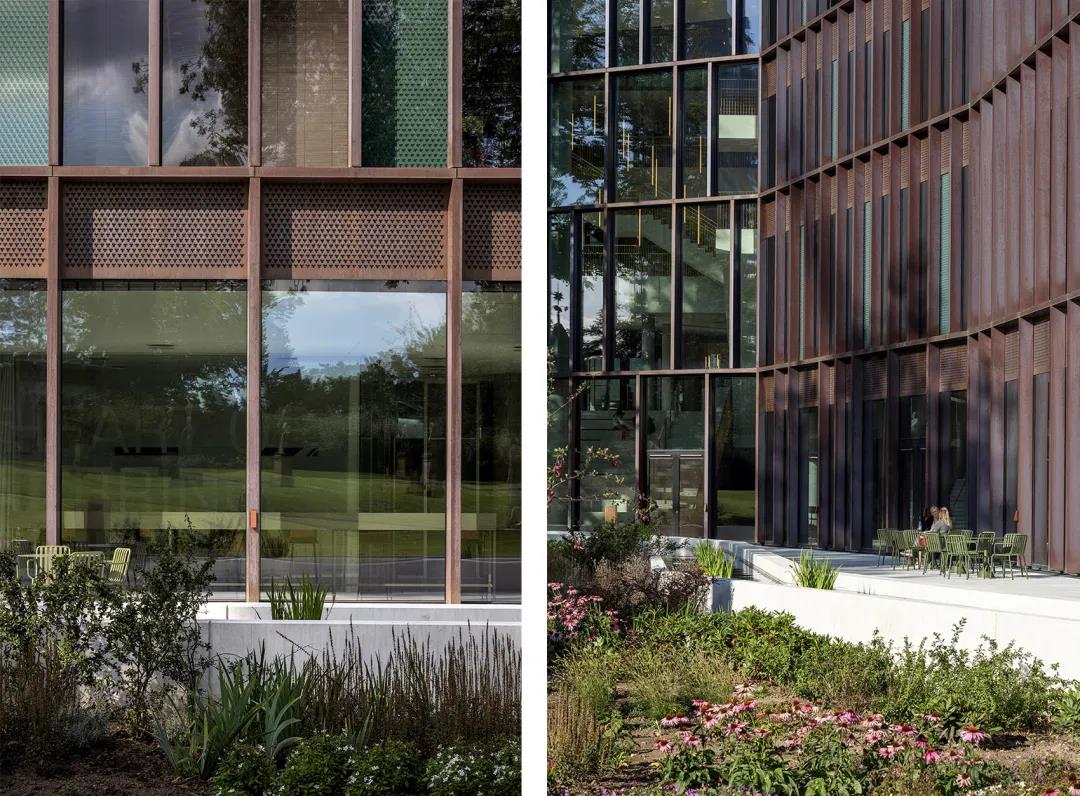 办公楼附近的私人区域与历史花园之间设有一处新的水景,形成了一个富有自然气息的过渡空间,在将花园转变为充满休闲氛围的公共区域,使良好的气候适应性和可达性,与当地的文化遗产交织在一起。
