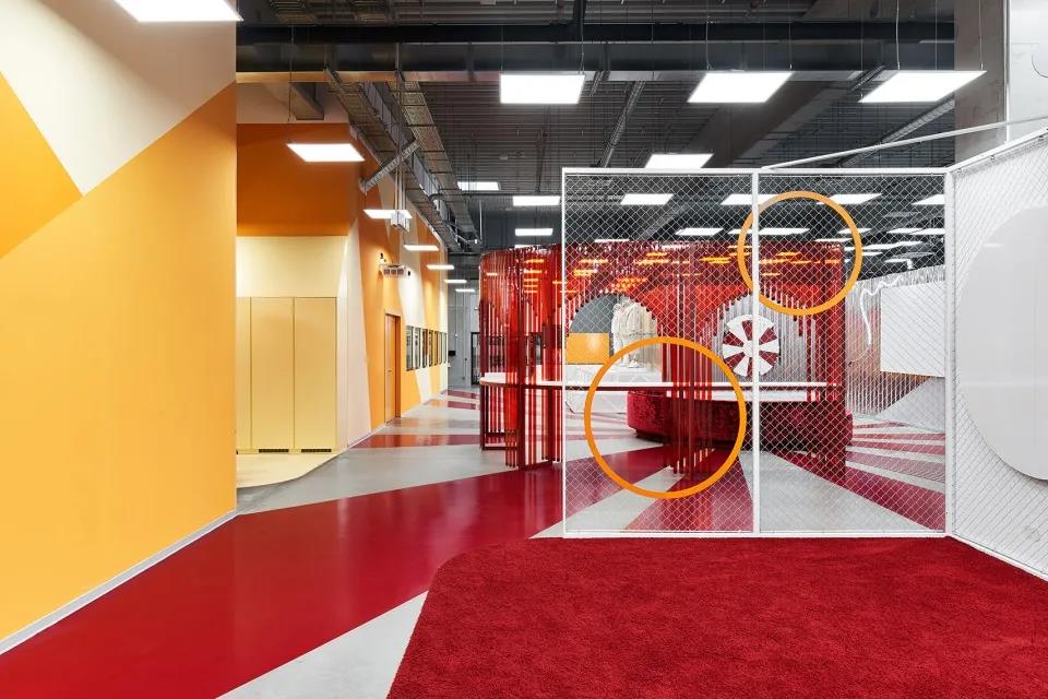 办公室变成时装马戏团是什么体验?这家在德国的公司可以现身说法,这是萨克森海姆的Breuninger商厦物流中心,办公室变成一个包罗万象的马戏团空间,结合了室内设计、建筑、创意引擎和德国领先时装零售商的内容制作部门。