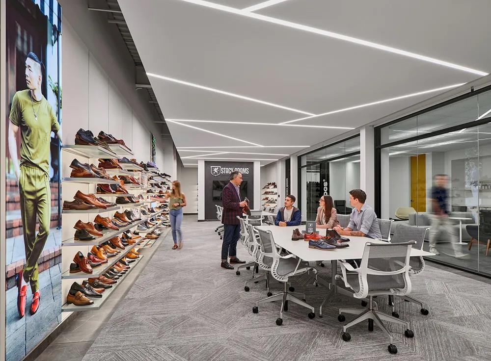在整个设计过程中,Weyco致力于最先进技术设施的投资,这使得他们的工作团队能够以几乎一切如常的方式无缝地与客户召开会议。在新设计的品牌房间里,展示了各种产品系列,团队可以通过虚拟会议向买家展示新产品。