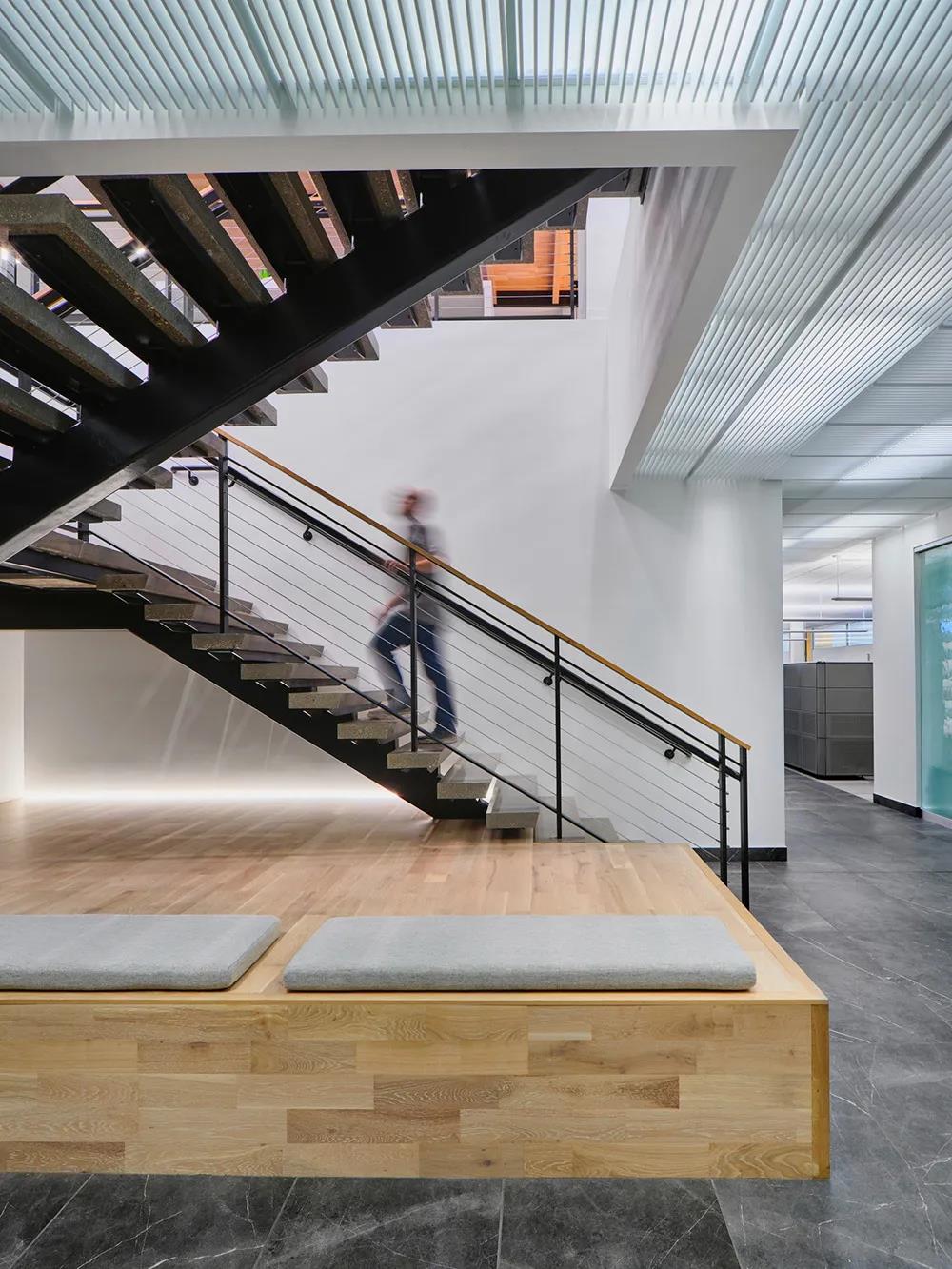 通过重新设计,设计、营销和产品开发等极具创意的部门现在拥有了一个激发灵感的空间,使他们能够在该行业正经历客户购买习惯的巨大转变之时,将创意和产品创新提升到一个全新的水平。该项目包括:重新设计的大堂和入口、与四个新品牌工作间相连的中央接待空间、一个中央楼梯、二楼扩建了部分用以设计和营销部门的新空间,以及各种团队协作区域(在这里,前沿科技设施的加持让制造业开始向创意和设计领域飞跃。)