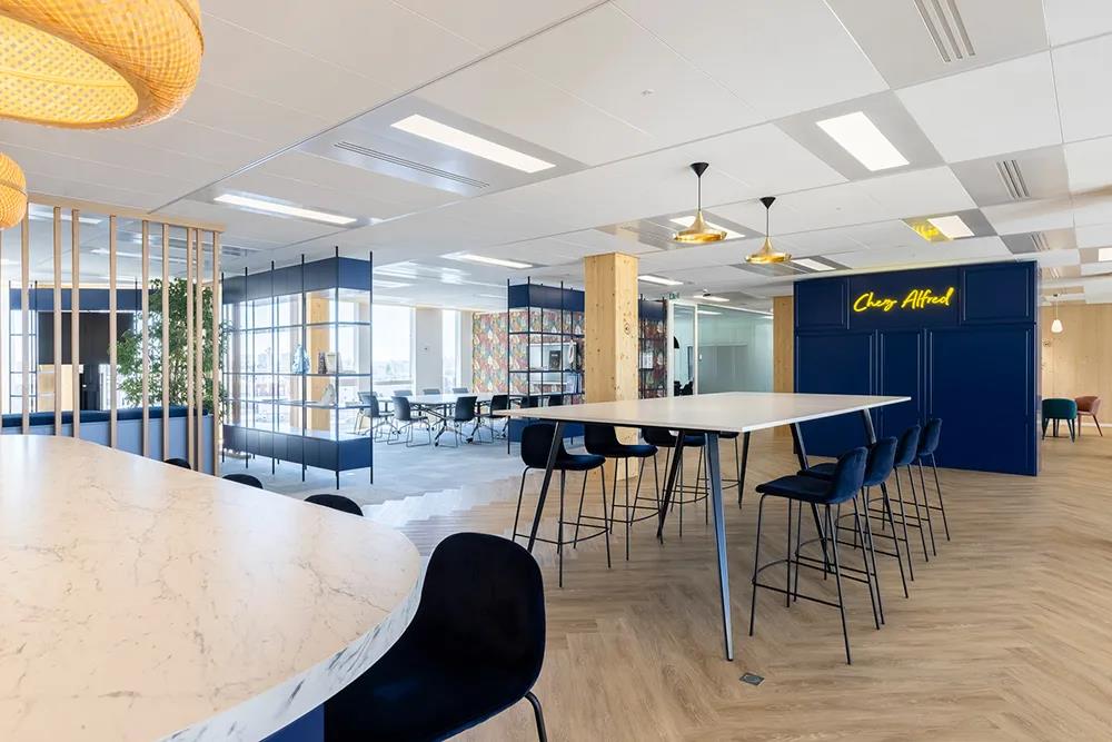 平面的中心是面向所有人的广场空间,这里设有茶室、“Chez Alfred”角(向1880年公司创始人Alfred Verspieren致敬)、厨房和休息室,旨在为员工提供一个欢愉的场景促进更多的遇见与协作。