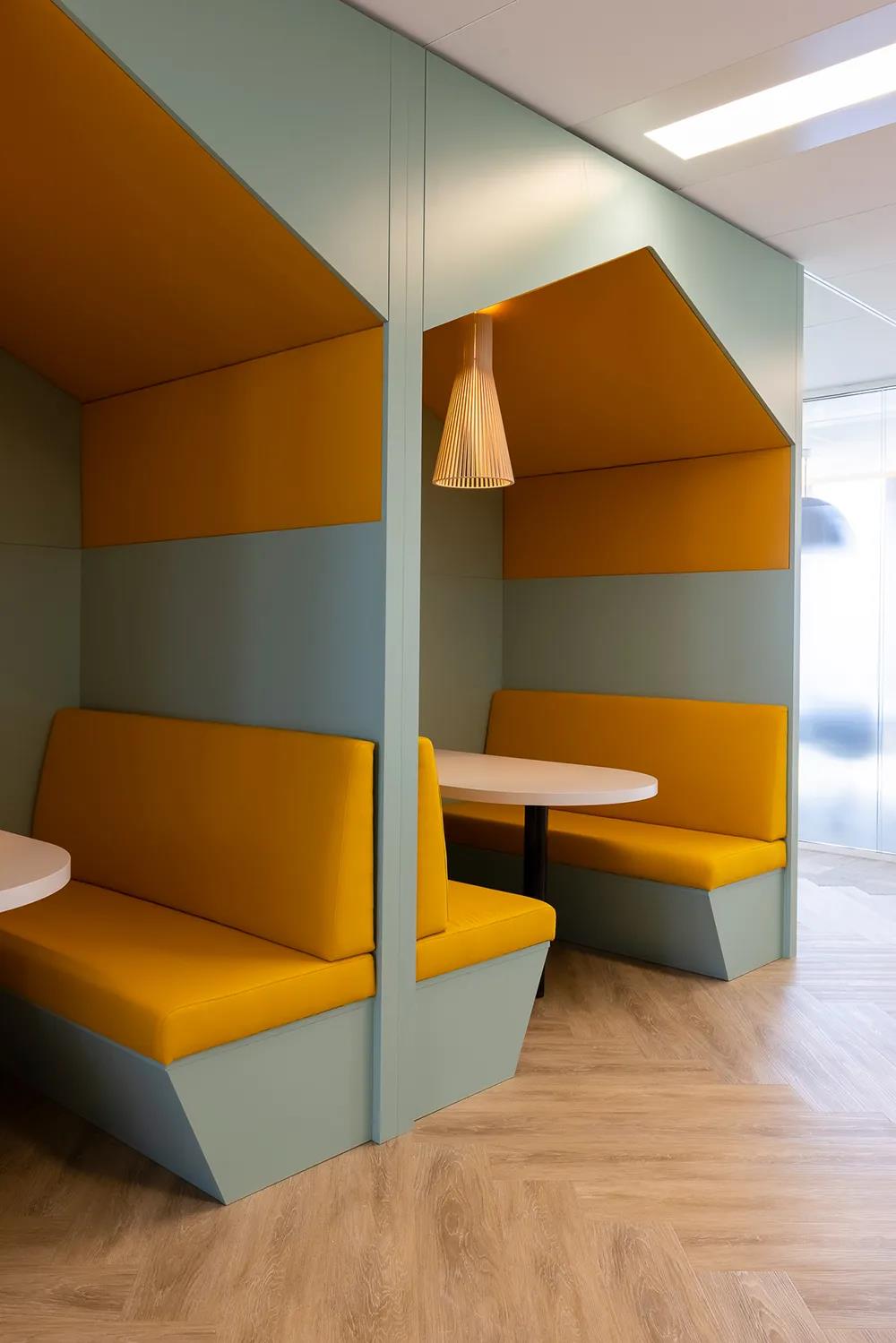七楼,设有专门用于接待客户的接待空间,接待区附设会议室和休息室。设计团队以舒适的家具和温暖的配色为这里营造出一个欢欣愉悦的亲和氛围。