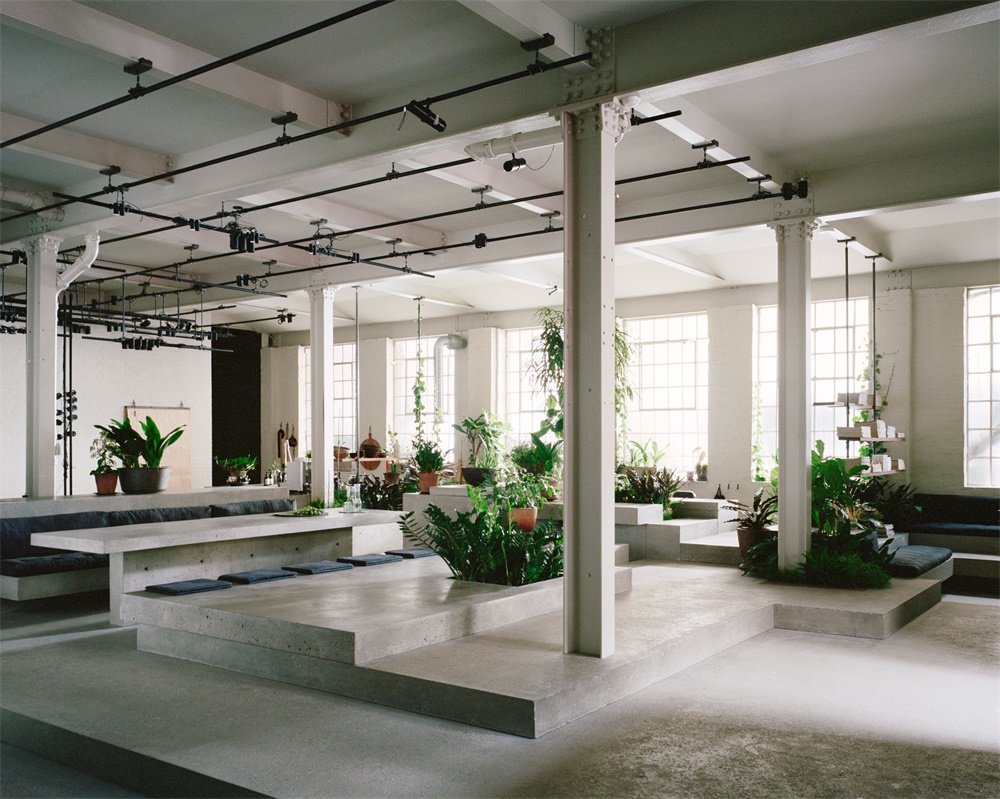 这个工作室完全拆掉了大楼,露出了工业外壳,只留下了裸露的砖墙、钢柱和一些曾经被用来染动物皮的凹坑。