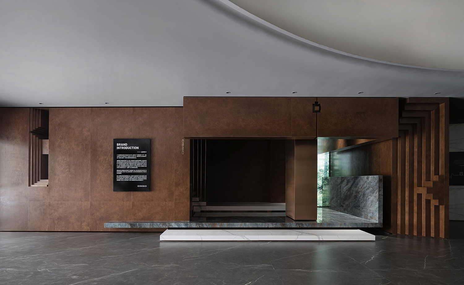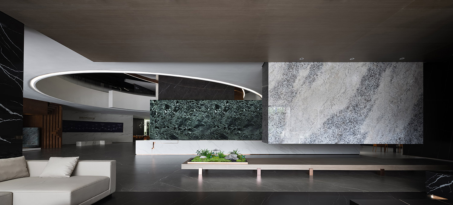 该项目位于中国佛山,是一个生产和供应岩板的建材品牌Osso的陈列室。近年来,岩板被广泛应用于高端定制领域.它的超大规格,自然纹理和安装技术需要通过专业的方式呈现。