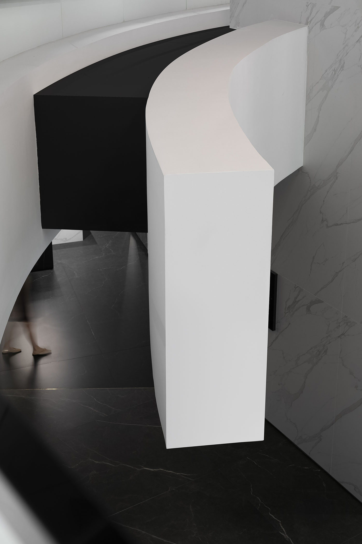 弯曲的外壳削弱了紧张感,增加了整个空间的乐趣。封闭的曲线既不像线那么平,也不像折叠线那么硬。相反,它揭示了一种柔软而又肆无忌惮的、谦卑而又解放的氛围。曲线勾勒出一个独立的空间,人们可以沉浸在思考和冥想中,同时也提供了令人耳目一新的视觉和精神体验。