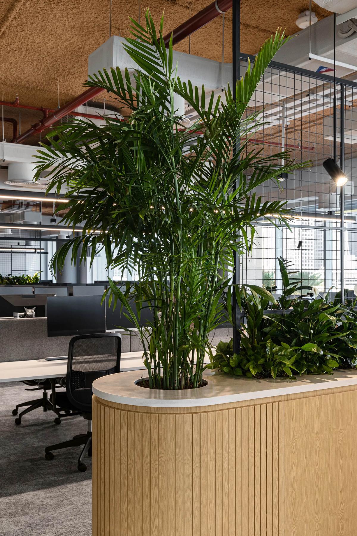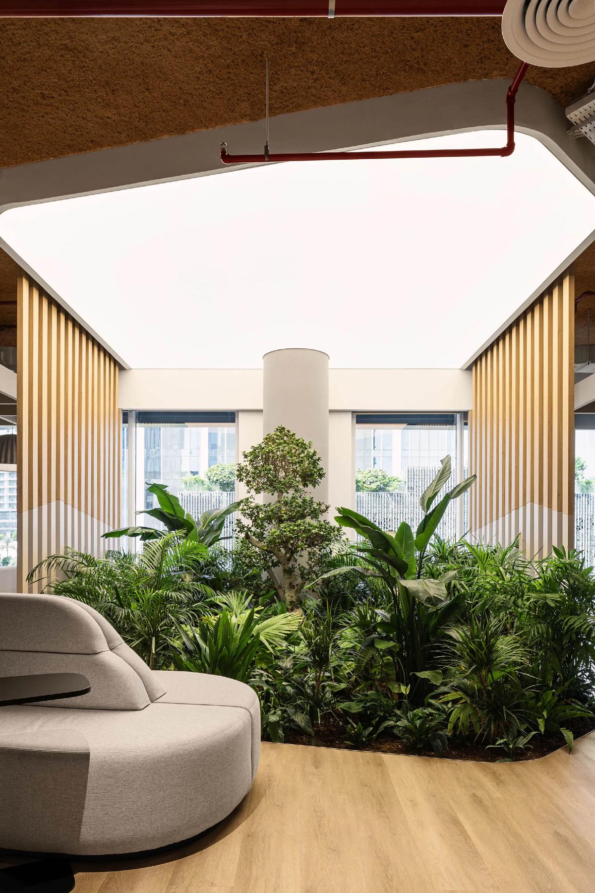 办公空间整体融入了亲生命设计元素,以提升员工参与度和环境归属感。这一设计超越了传统办公理念,通过优化空间布局促进员工身心健康、知识共享与团队协作。