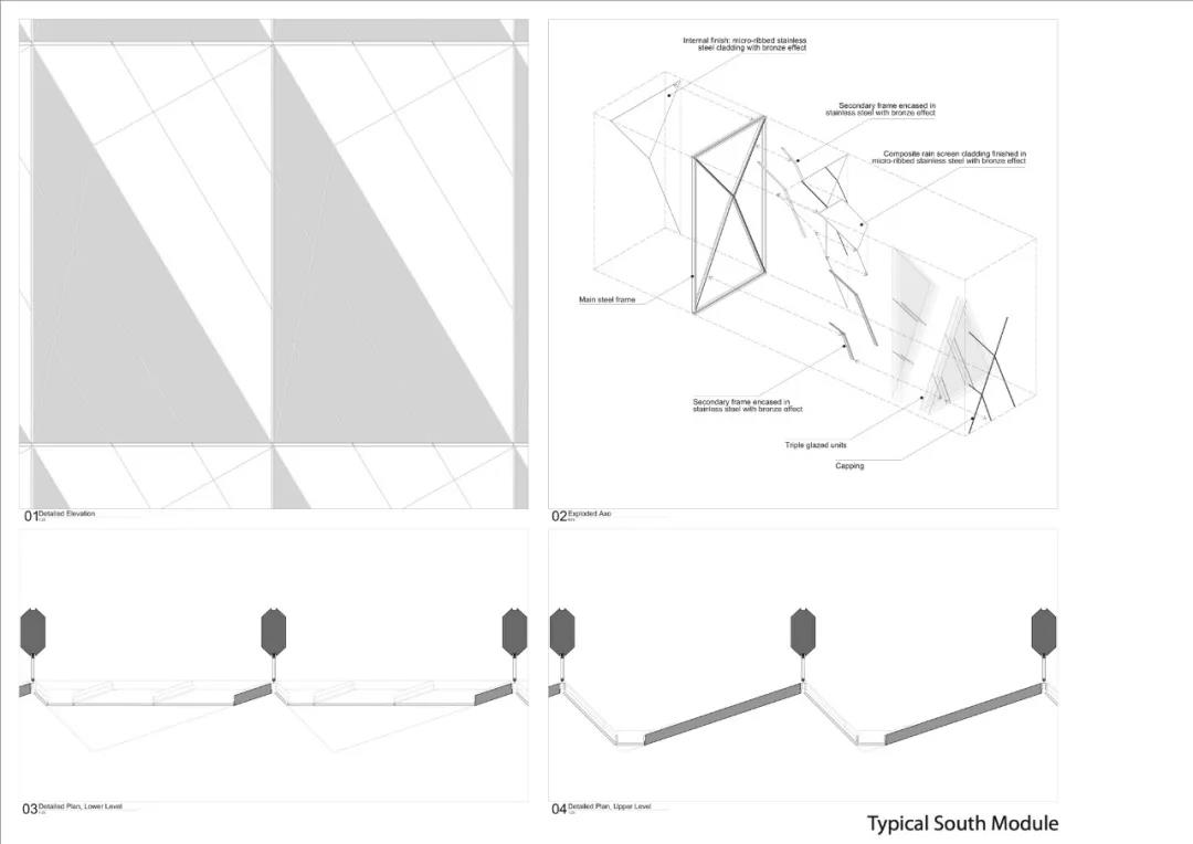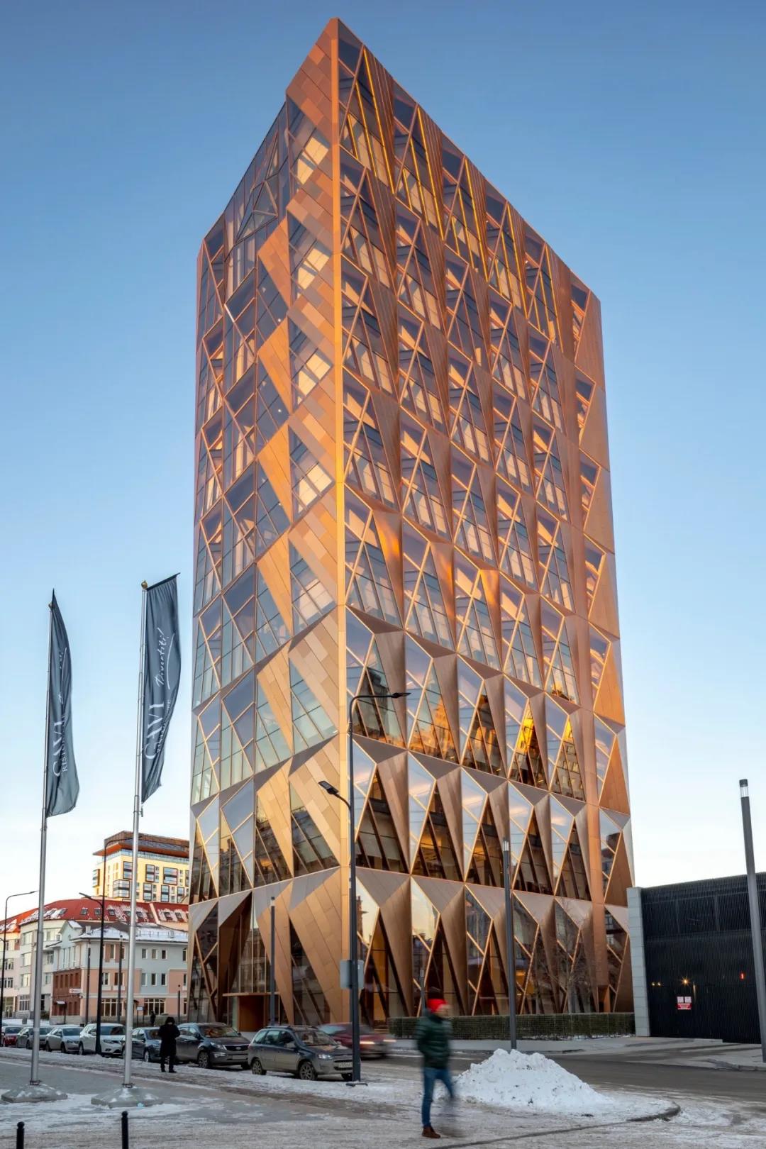 建筑的三角形语言的灵感来自于铜的晶格结构,而建筑的顶部整合了RCC的新标识,这是一个重新命名的标志,反过来,也受到了建筑的启发。