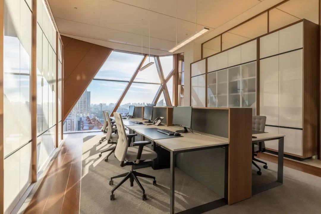 作为员工的住宅,foster + partners在俄罗斯的RCC总部提供了更私密的、国内规模的房间。该事务所的工作场所咨询小组分析了客户的运营情况,并帮助为这些房间设计了创新的模块化系统。这是与内部工程团队共同开发的,以实现快速施工,并确保理想水平的自然光用于集中工作。