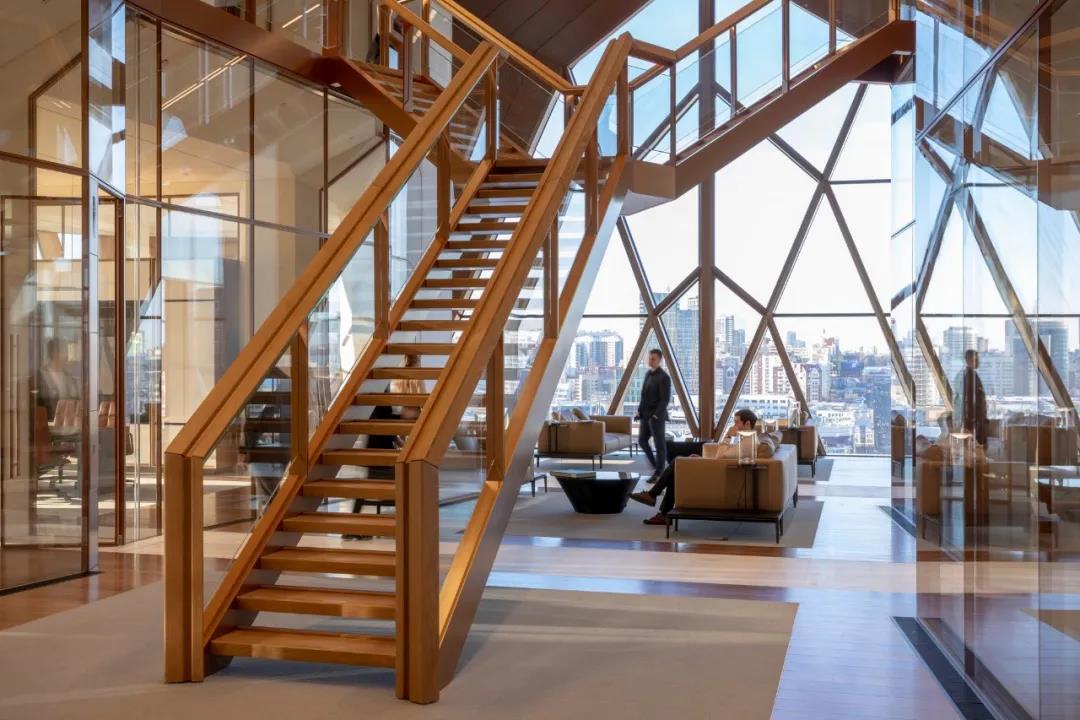 在开发这座大楼的过程中,设计团队摒弃了传统的大型公共工作空间组织,转而寻求将总部改造为“员工之家”。