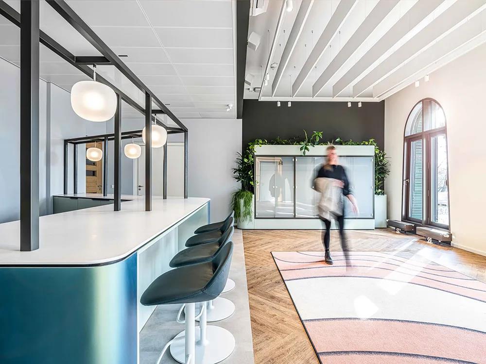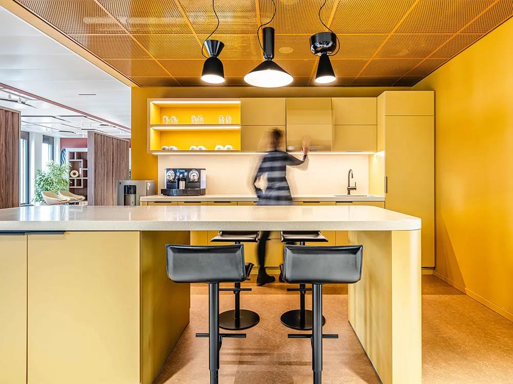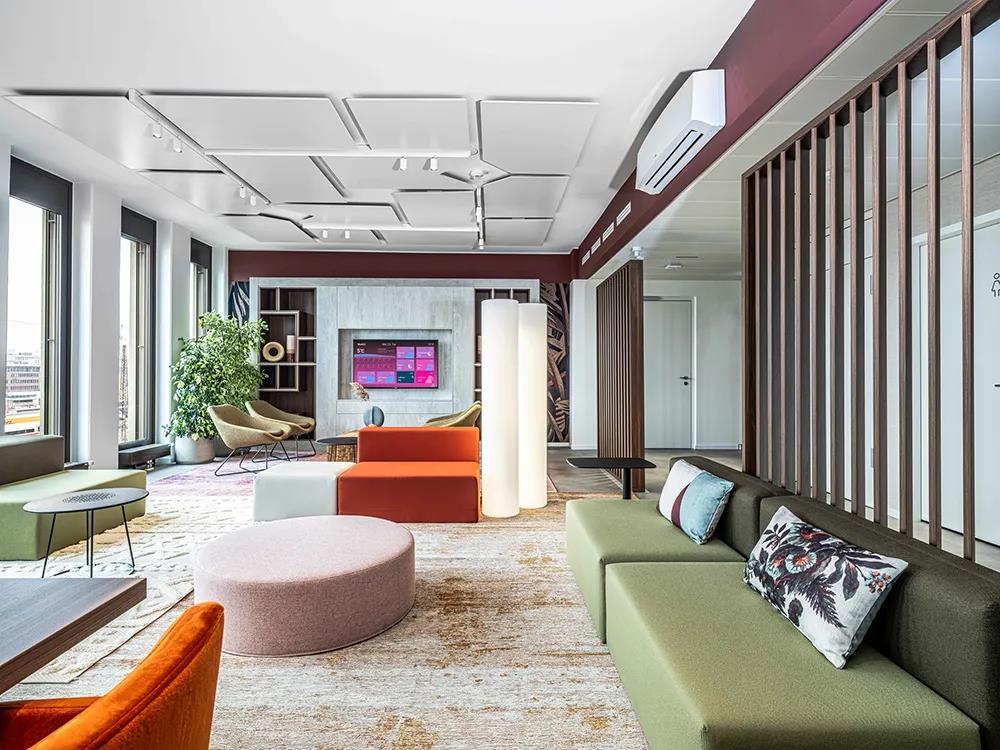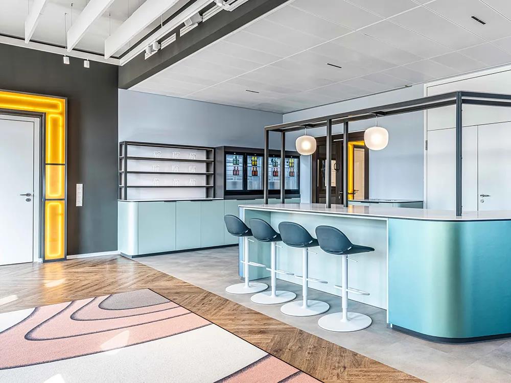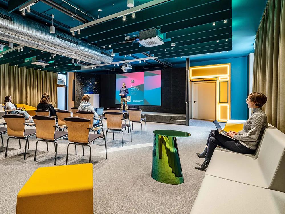 2020年,D/DOCK完成了JetBrains阿姆斯特丹的办公室,在这个项目中,他们将公司价值观、用户体验、与人际关系动态和个人专注力相结合。此番慕尼黑办公室的设计旨在展现JetBrains的多样性和个性特色,以及客户的视觉标识和所在MY.O建筑的装饰艺术风格。