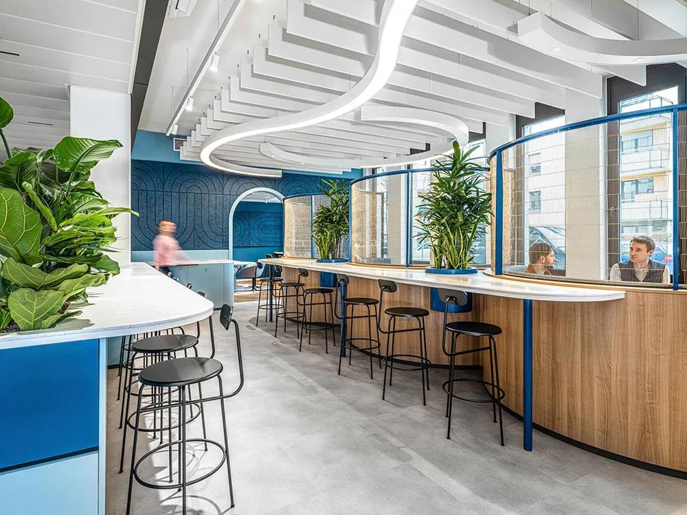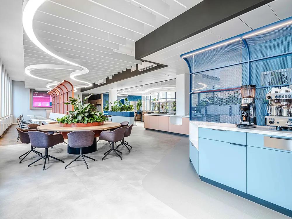 设计团队以“城市”为理念打造这处大型办公空间,如人文尺度、自然生态、步道、停留、亲和性、多样性、惊喜和偶然的元素。团队间的强大合作最终成就了这处自然流畅的工作环境,赋予空间专业的调性和灵活性,有着居家办公无可比拟的优越性。