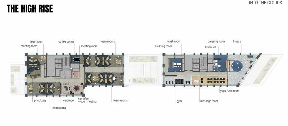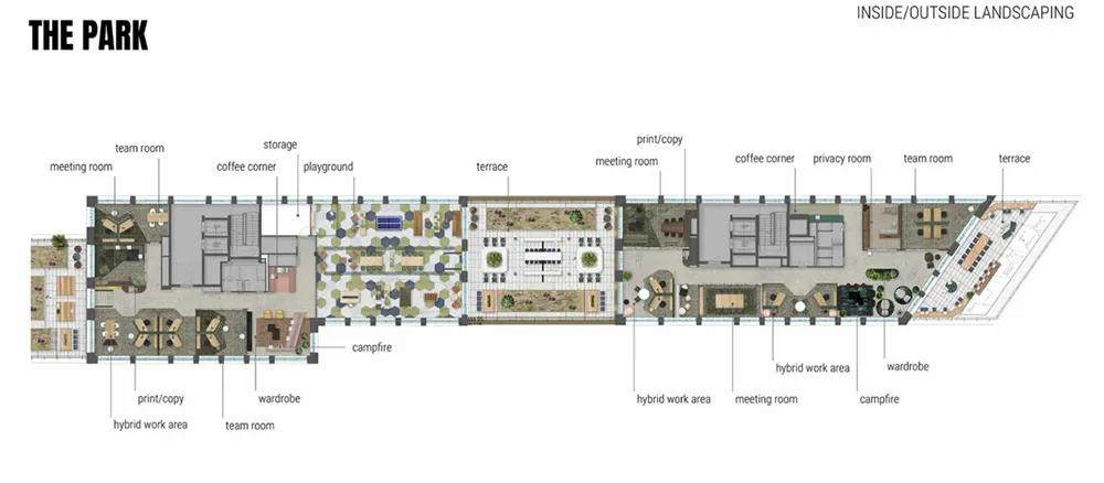 建筑的每一层,都规划有公共空间,供所有员工工作、休闲、社交、或举办各类团队活动。同时,这些公共空间都拥有令人愉悦的城市景观或绿植景观。