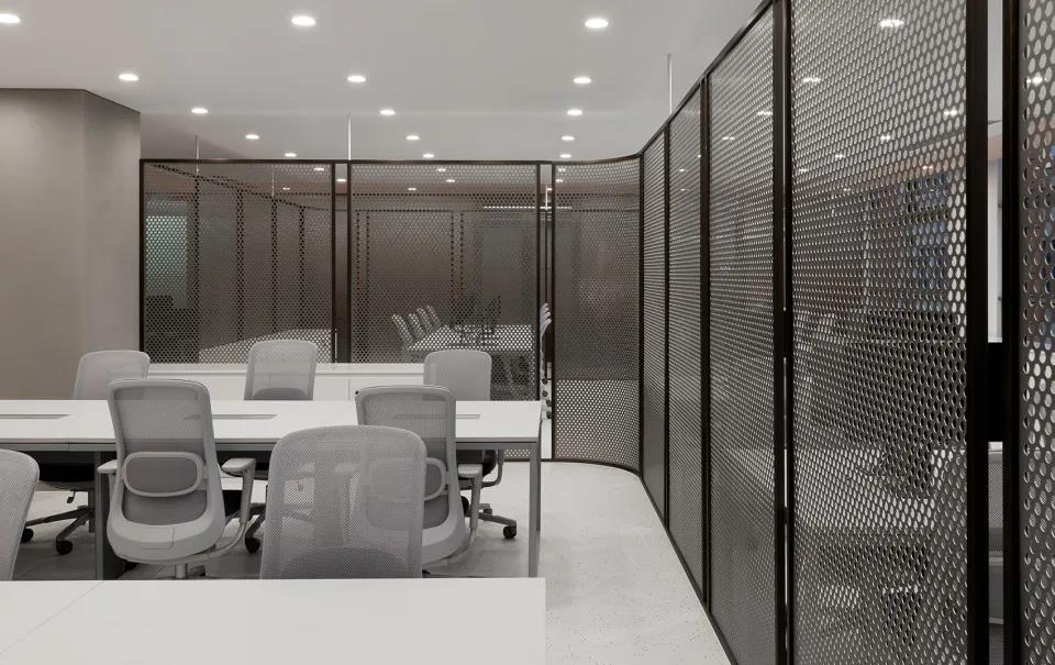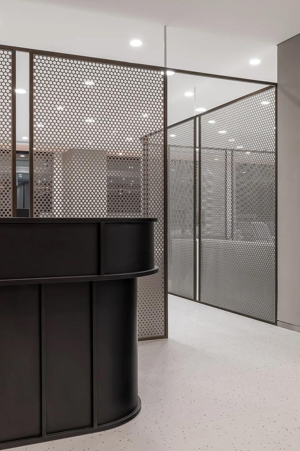 ▼弧形黑框不锈钢穿孔板屏风